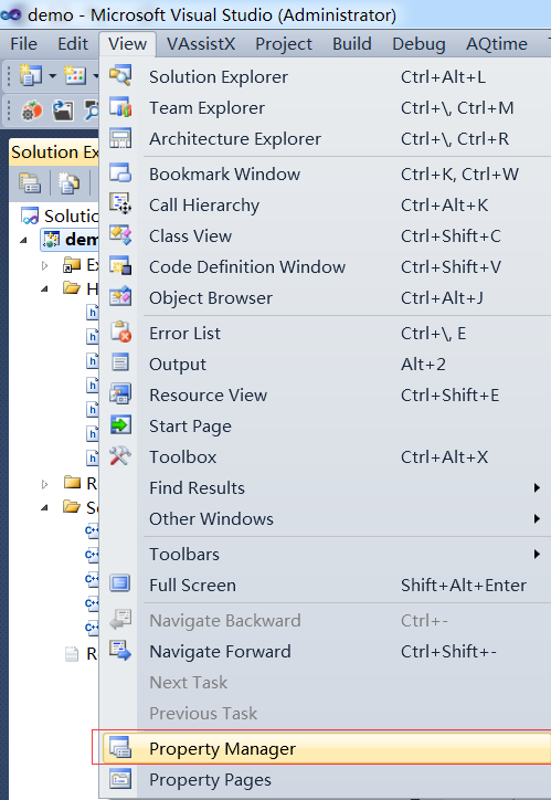 2.1、打开Property Manager,如图: