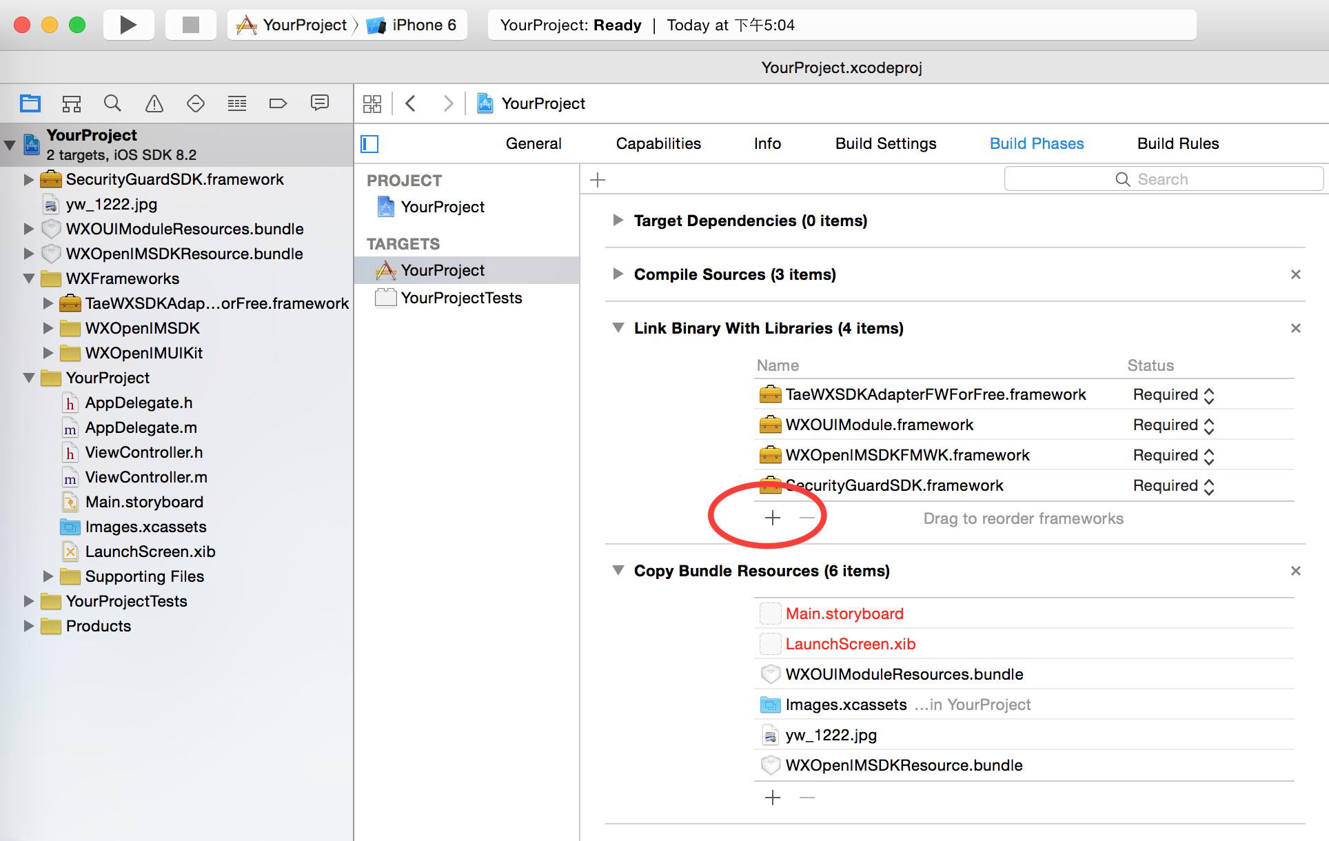 注意:如果没有添加WXOUIModuleResources.bundle,您可能在打开IM页面时界面元素为空白。