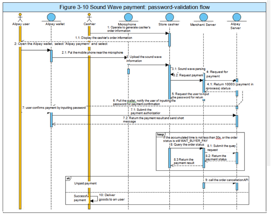 The Sound Wave payment has two flavors: password-free payment and password-validation payment.