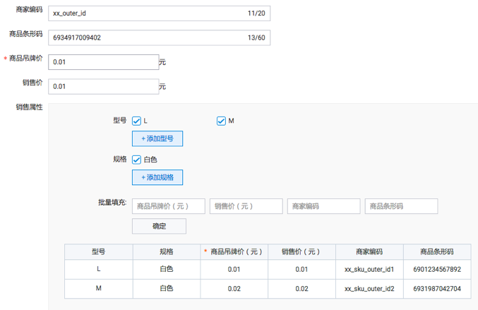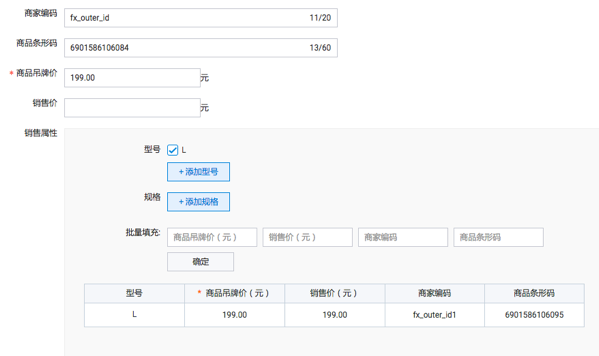 a. 如果商品上含有sku信息,商品编码和条码必须传入SKU粒度的,否则报错。