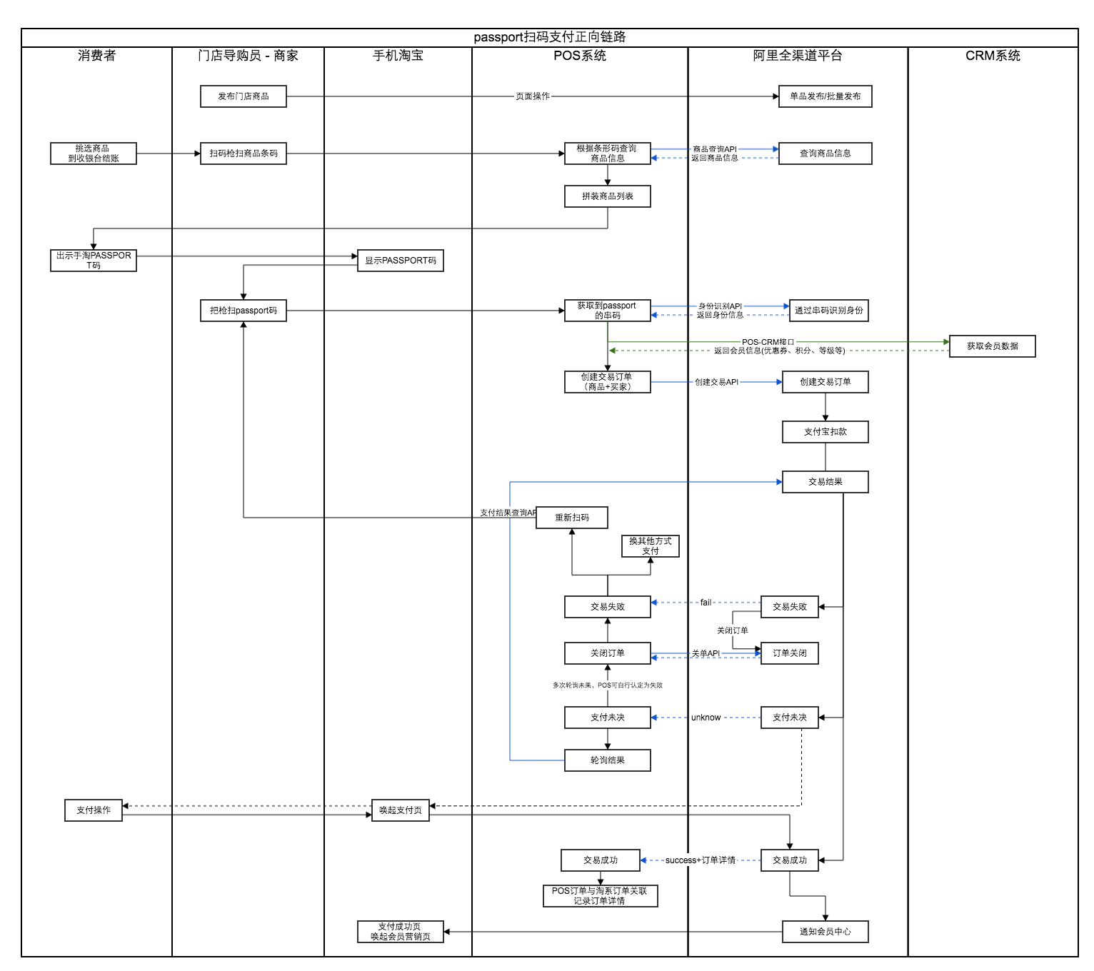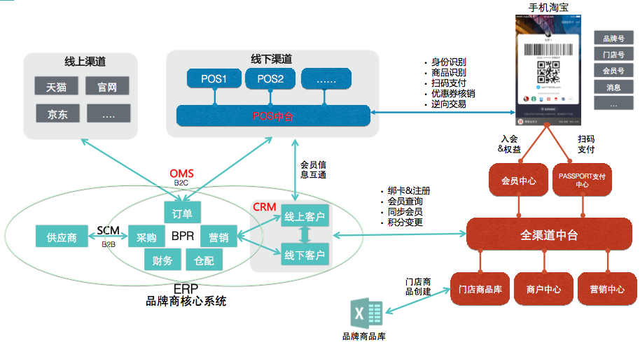 商家在门店的日常经营中,期望通过线下ERP/POS管理系统统一管理会员,识别用户并将交易进行电子化,为后续的二次营销触达提供数据基础。为此,阿里全渠道推出手淘Passport支付方案,并开放接口与线下ERP/POS管理系统进行对接。