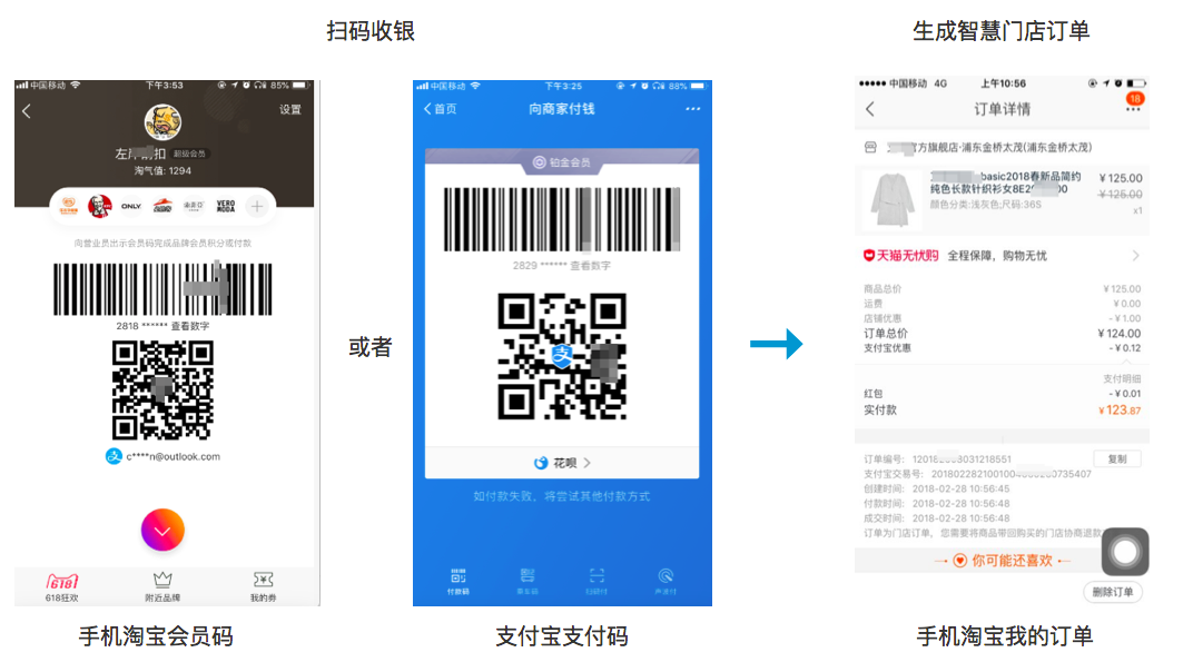 原先在门店,消费者支付宝付款后,我们只能知道有一个人买了多少钱的商品,但是不知道是哪个人、在哪个门店、买了哪个商品。新零售旨在重构门店人、货、场,借助平台大数据的能力,分析用户画像,帮忙品牌和门店建立起和用户的深度链接,一方面通过多渠道引流消费者到门店消费(比如手淘的新零售会场、会员码、发放门店优惠券等),另一方面也在消费者购买或入会后,完成后续的二次营销推动复购。